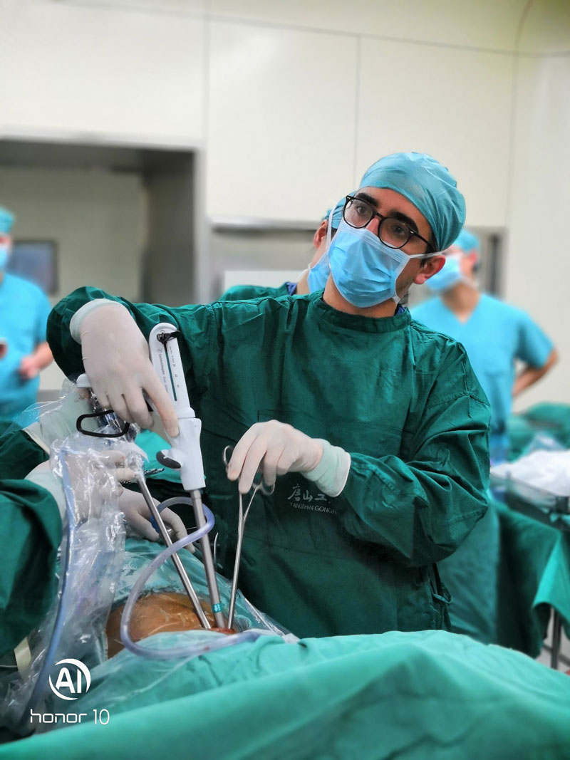 “小冈哥“在世界上首先开创了单孔胸腔镜下的肺叶切除、肺段切除、支气管袖式肺叶切除及袖式切除等复杂术式。 术中冈萨雷斯医师非常熟练地使用健瑞宝医疗的腔镜切割吻合器,完美地完成了手术表演。他对健瑞宝医疗的器械给予了高度的评价,“这是我用过的最好的国产腔镜切割吻合器”。